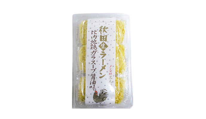細ちぢれ麺に、秋田比内地鶏のガラスープを使用した醤油味のラーメンです。