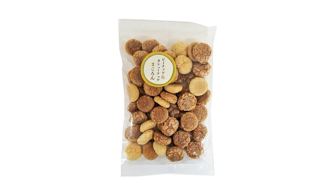 ピーナッツとカシューナッツを使用した2種類のまころんを詰め合わせました。