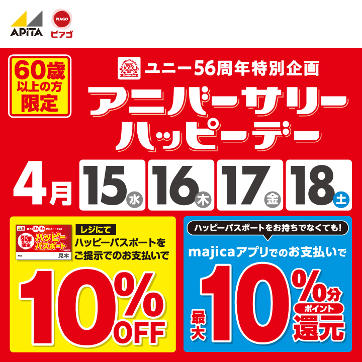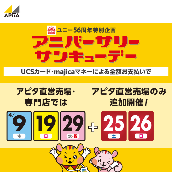 アピタ金沢文庫店、アピタ戸塚店、アピタパワー君津店、アピタ木更津店、アピタ長津田店、アピタ東松山店、アピタ足利店、アピタ高崎店、アピタ宇都宮店、アピタ前橋店、アピタパワー新潟亀田店、アピタ新潟西店、アピタ長岡店、アピタ金沢店、アピタ富山店、アピタ富山東店、アピタ福井大和田店、アピタ伊東店、アピタ島田店、アピタ大仁店、アピタ向山店、ピアゴ新城店、アピタ蒲郡店、アピタ浜北店、アピタ磐田店、アピタ桑名店、アピタ伊賀上野店、アピタ松阪三雲店、アピタ大和郡山店、アピタ北方店、アピタ各務原店、アピタ大垣店、アピタ御嵩店、アピタ岡谷店、アピタ飯田店、アピタ双葉店、アピタ刈谷店、アピタ西尾店、アピタパワー大府店、アピタ知立店、アピタ阿久比店、アピタ岡崎北店、アピタ安城南店、アピタ一宮店、アピタ千代田橋店、アピタパワー岩倉店、アピタ稲沢店、アピタパワー木曽川店、アピタ江南西店、アピタ緑店、アピタ港店、アピタ名古屋南店、アピタ名古屋北店、アピタ東海荒尾店、アピタ瀬戸店、アピタ高蔵寺店、アピタ長久手店、アピタ鳴海店、ピアゴ川辺店、ピアゴ笠松店、ピアゴ瑞浪店、ピアゴ多治見店、ピアゴ平針店、ピアゴ中村店、ピアゴパワー長久手南店、ピアゴパワー守山店、ピアゴ袋井店、ピアゴ丸岡店、ピアゴ小矢部店、ピアゴパワー妙興寺店、ピアゴ佐屋店、ピアゴ尾西店、ユーストア印場店、ピアゴ篠木店、ピアゴ東刈谷店、ピアゴ碧南東店、ピアゴ福釜店、ピアゴ清水山店、ピアゴ上和田店、ピアゴ洞店、ピアゴ幸田店
