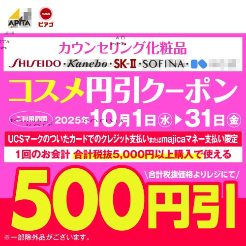 ■実施店舗 詳しくは各店舗の売り場をご確認ください ※一部店舗では取り扱いがない場合がございます ■対象商品 衣料品・日用品・化粧品・家庭用品・調理台所用品・家電用品・文具玩具など ※対象商品は店舗によって異なりますので、店舗にてご確認ください